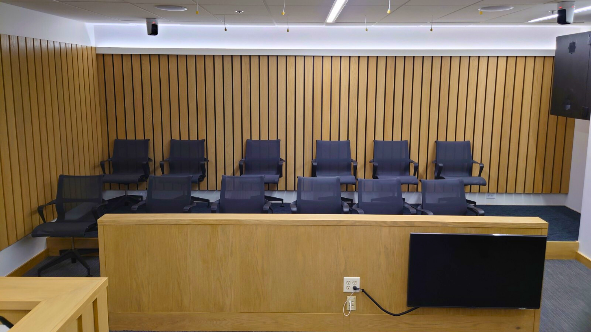 - Jury box for 14 (12 jurors + 2 alternates)